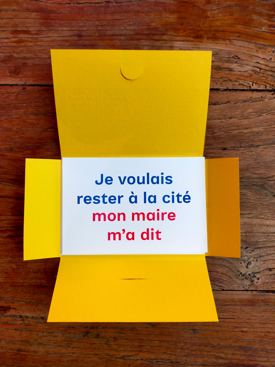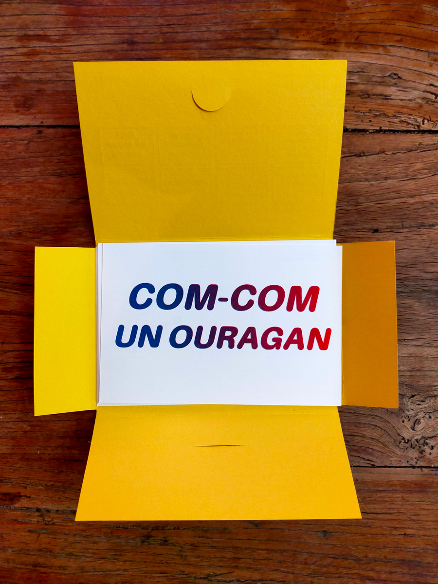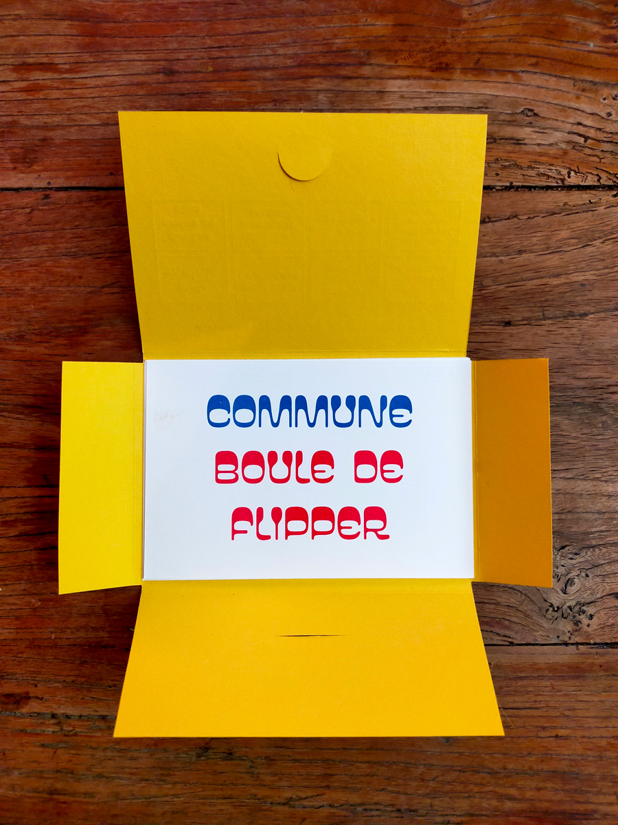Coffret de 8 cartes postales, pochette imprimée en typographie (impression et découpe), et cartes postales en risographie 2 couleurs recto-verso.
